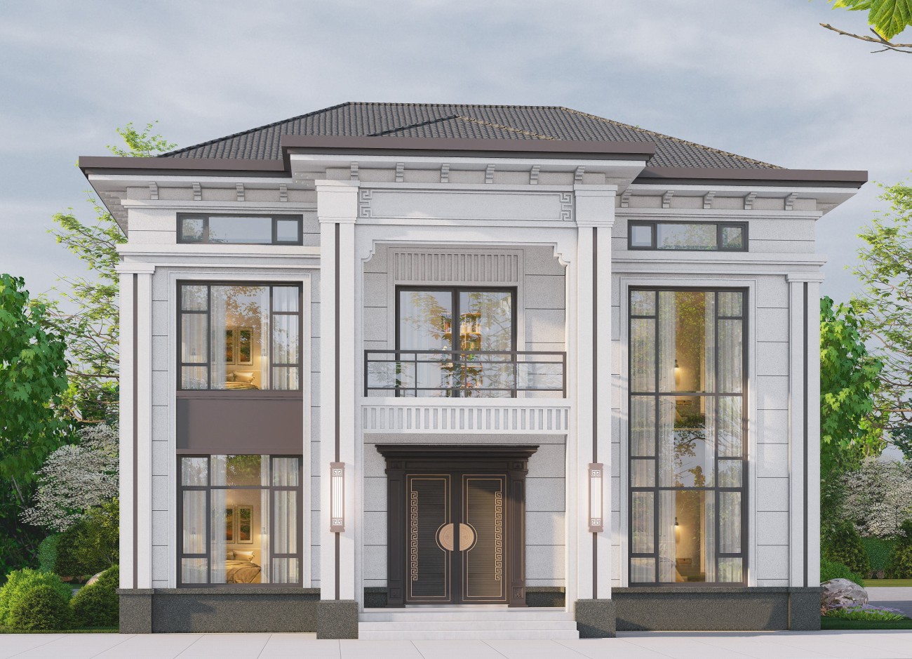 阿坝12 新中式两层半(12.8x13.06米)-【易设计】